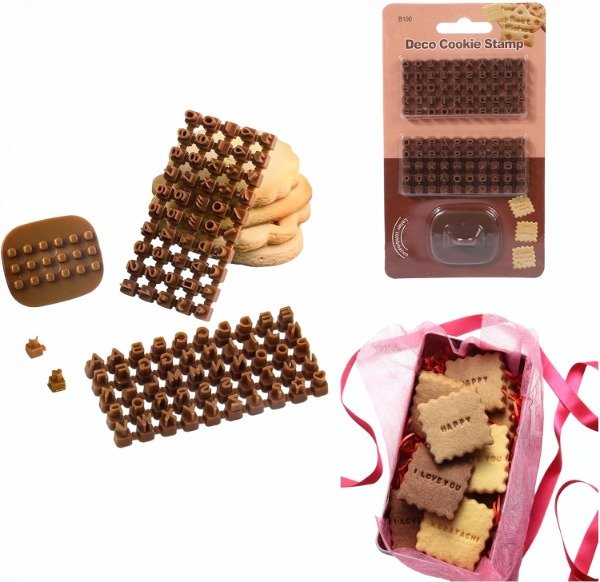 Incluye todas las letras del abecedario, signos especiales y el estampador donde se colocan las letras y números.