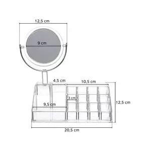 Fabricado con acrílico transparente de alta calidad, posee 16 compartimientos de distintos tamaños.