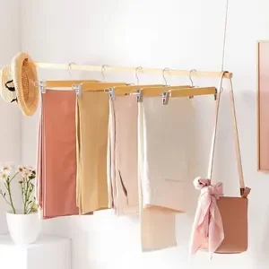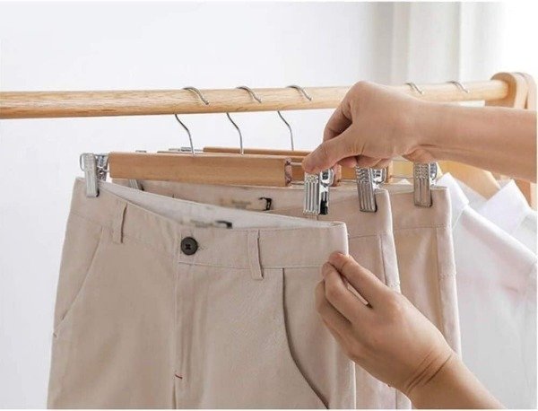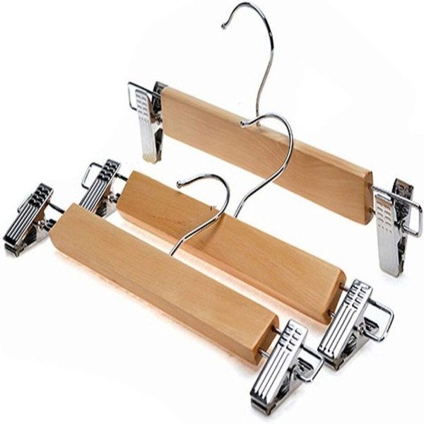 Estas perchas de madera son ideales para colgar tus pantalones y faldas.