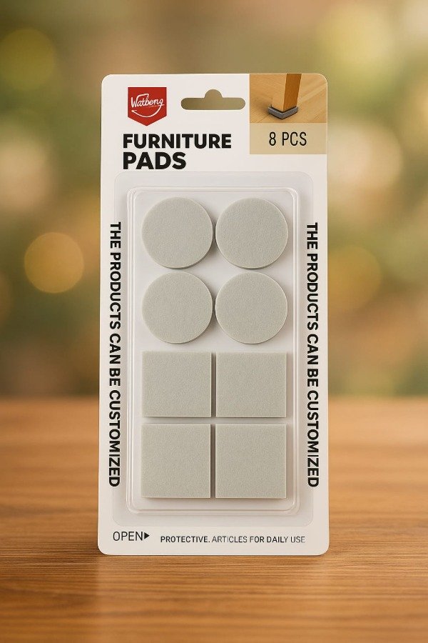 Topetinas autoadhesivas de fieltro: 4 circulares de 4 cm de diámetro y 4 rectangulares de 4x3 cm.