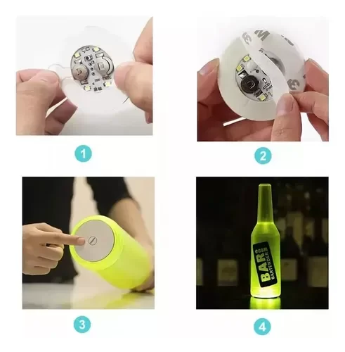 ¡Un idea genial! Luz LED con autoadhesivo para pegar debajo de las botellas, floreros o centros de mesa.